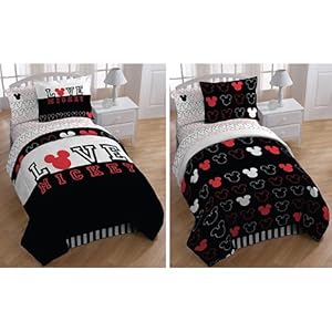 Product Description : Add a magical touch to your bedroom decor with this incredible Mickey Mouse 'Love' bed in a bag set. The set includes: 1- Full Size Comforter, 1- Flat Sheet, 1- Fitted Sheet, 2- Pillowcases & 2- Pillow Shams.