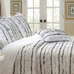 | Access the most advanced RSS tools and use them to your advantage. | 2013-04-05 01:38:22.013352-04 Category: Home & Kitchen Vendor: Product Dimensions: 1 x 68 x 88 inches Shipping Weight: 7 pounds (View shipping rates and policies) ASIN: B007WU3GYS Average Cu  Product Description : GL-1109GT Rows of soft cotton ruffles carefully pieced and quilted in pre-washed black / white-colored 100% cotton. Create a romantic look with midnight ruffle quilt set. Oversized for better mattress coverage! Features: -Comes with two pillow shams (one sham per twin set). -100% Cotton face, back and fill. -Cozy and comfortable. -Reverses to a matching solid color cotton for easy sophistication and refined, relaxed living. -Machine washable. -Dimensions: 88" Height x 68" Width. Find out more |